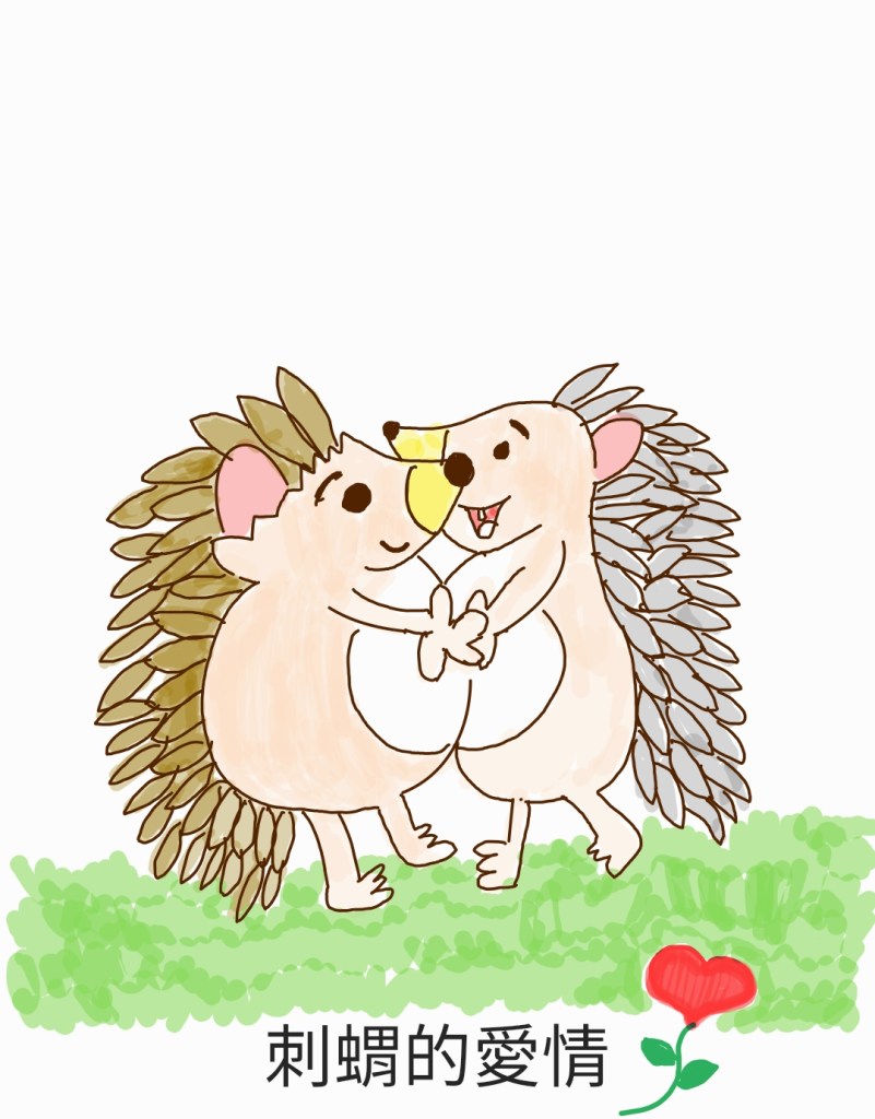 當兩隻刺蝟因著痛而放棄親近時,寒意又會一陣陣的侵襲彼此而再度陷入孤寂。